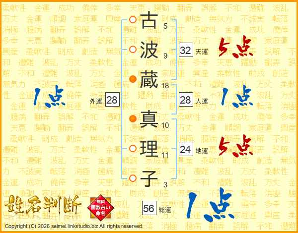 古波蔵真理子さんの総運は56画の1点!