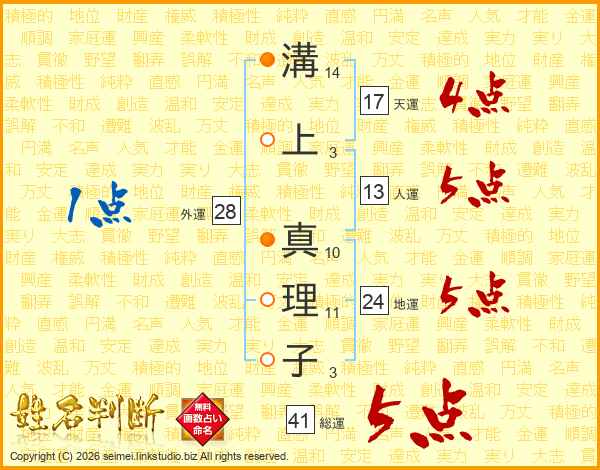 溝(14画)上(3画) 真(10画)理(11画)子(3画)