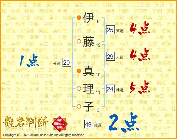 伊藤真理子さんの天運は25画の4点!