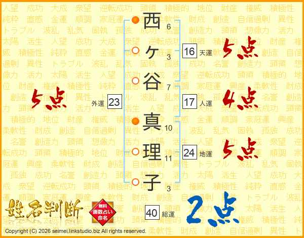 西ヶ谷真理子さんの総運は40画の2点!