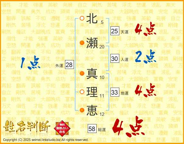北瀬真理恵さんの天運は25画の4点!