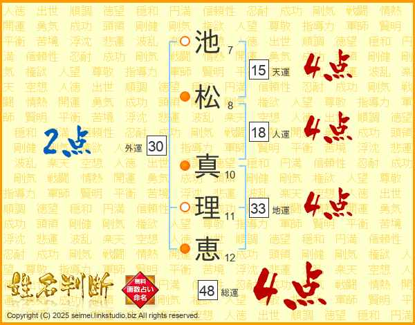 池松真理恵さんの総運は48画の4点!