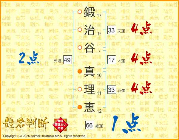 鍛治谷真理恵さんの天運は33画の4点!