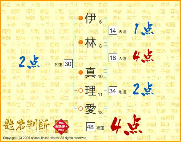 伊林真理愛さんの総運は48画の4点!