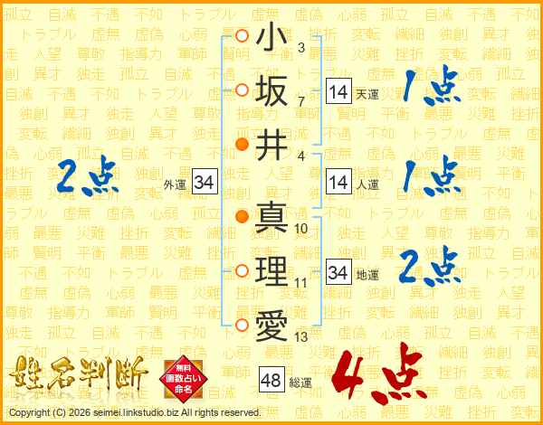 小坂井真理愛さんの総運は48画の4点!