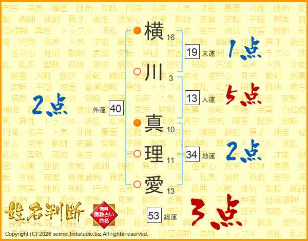 横川真理愛さんの総運は53画の3点!