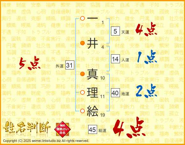 一井真理絵さんの総運は45画の4点!