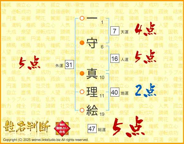 一守真理絵さんの外運は31画の5点!