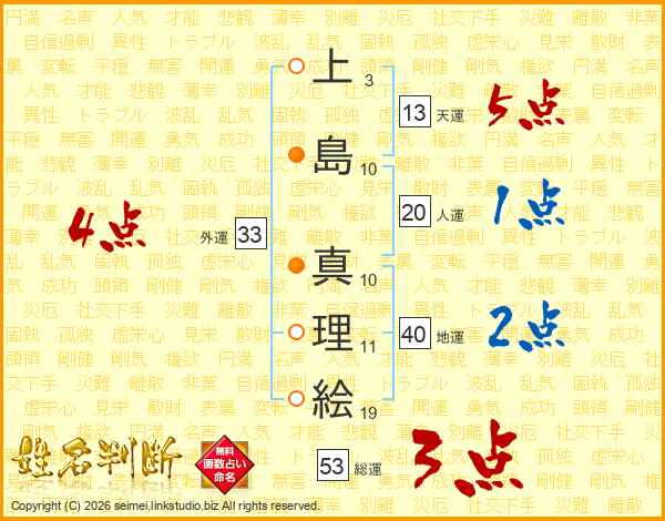 上島真理絵さんの外運は33画の4点!