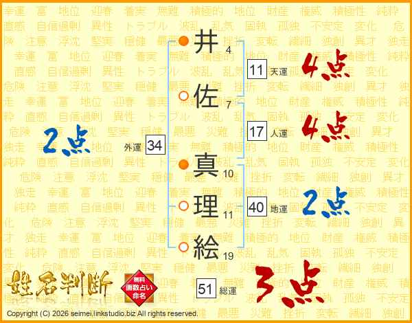 井佐真理絵さんの天運は11画の4点!