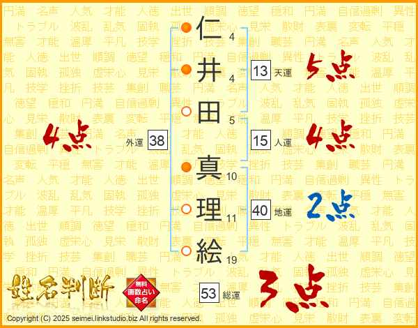 仁井田真理絵さんの外運は38画の4点!