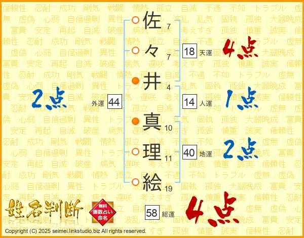 佐々井真理絵さんの総運は58画の4点!