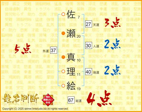 佐瀬真理絵さんの総運は67画の4点!