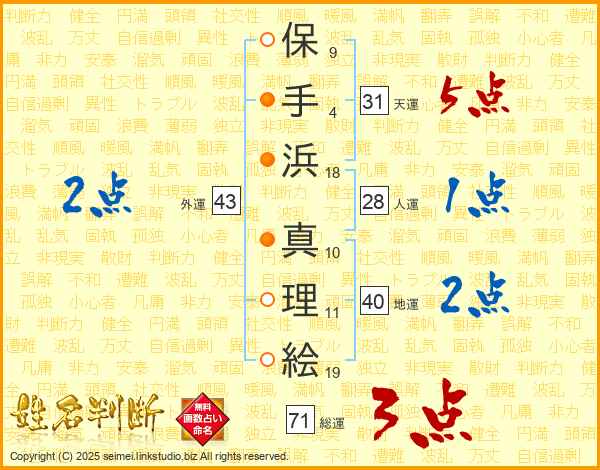 保手浜真理絵さんの天運は31画の5点!