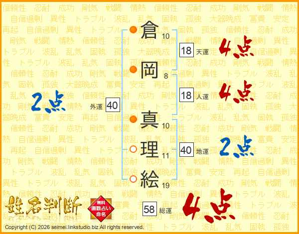 倉岡真理絵さんの天運は18画の4点!