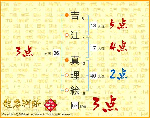 吉江真理絵さんの総運は53画の3点!