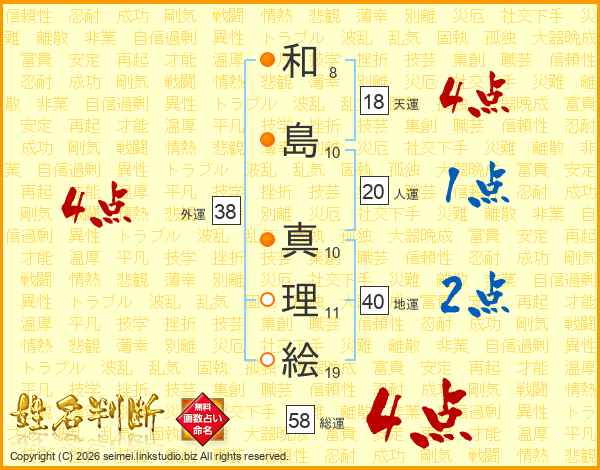 和(8画)島(10画) 真(10画)理(11画)絵(19画)