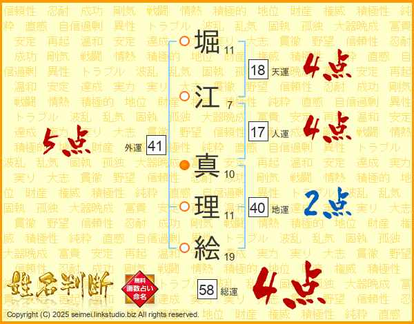 堀江真理絵さんの外運は41画の5点!
