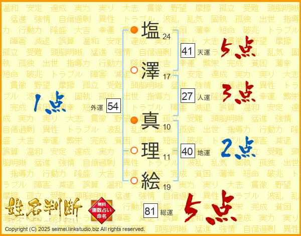 塩澤真理絵さんの総運は81画の5点!
