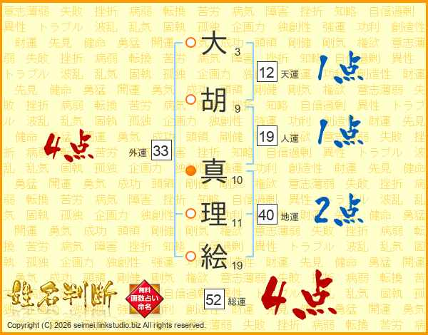 大胡真理絵さんの総運は52画の4点!