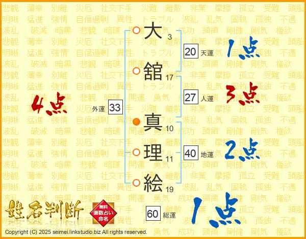 大舘真理絵さんの外運は33画の4点!
