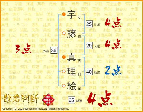 宇藤真理絵さんの総運は65画の4点!