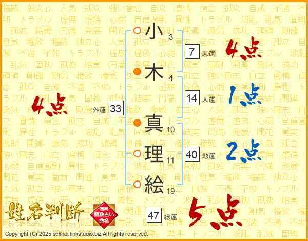 小木真理絵さんの外運は33画の4点!