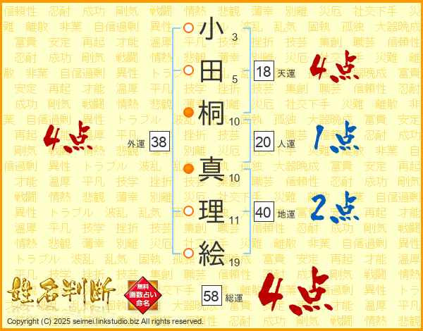 小田桐真理絵さんの総運は58画の4点!