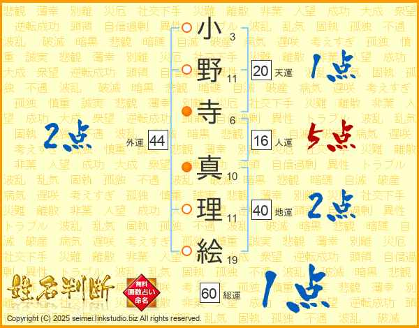 小野寺真理絵さんの外運は44画の2点!