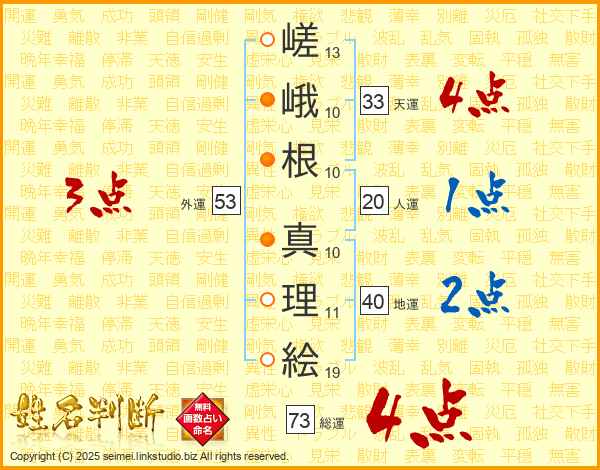 嵯峨根真理絵さんの総運は73画の4点!