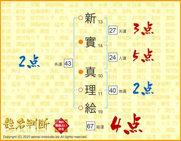 新(13画)實(14画) 真(10画)理(11画)絵(19画)