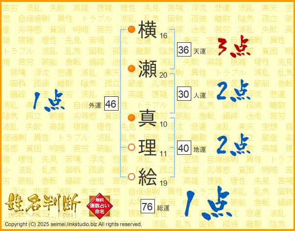横瀬真理絵さんの総運は76画の1点!