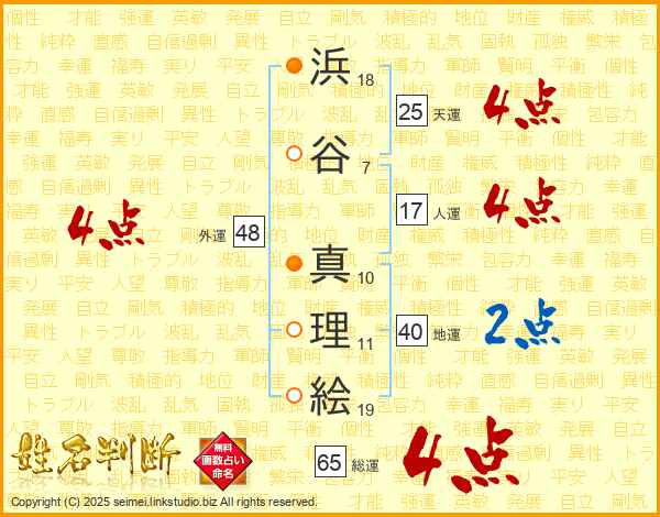 浜(18画)谷(7画) 真(10画)理(11画)絵(19画)