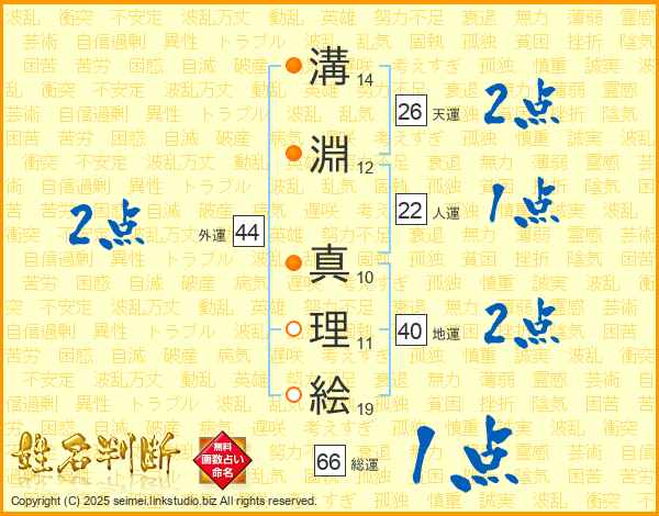 溝(14画)淵(12画) 真(10画)理(11画)絵(19画)