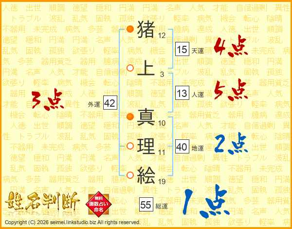 猪上真理絵さんの地運は40画の2点!