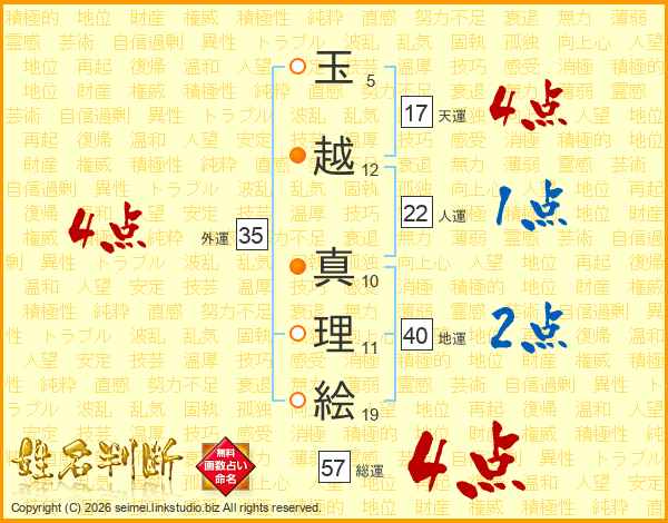 玉越真理絵さんの総運は57画の4点!