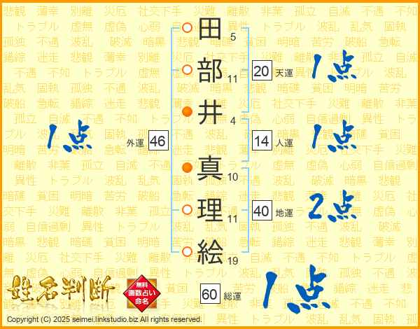 田部井真理絵さんの天運は20画の1点!