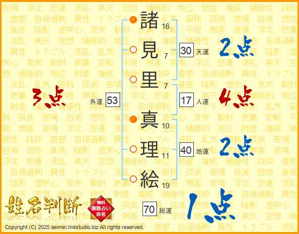 諸見里真理絵さんの総運は70画の1点!