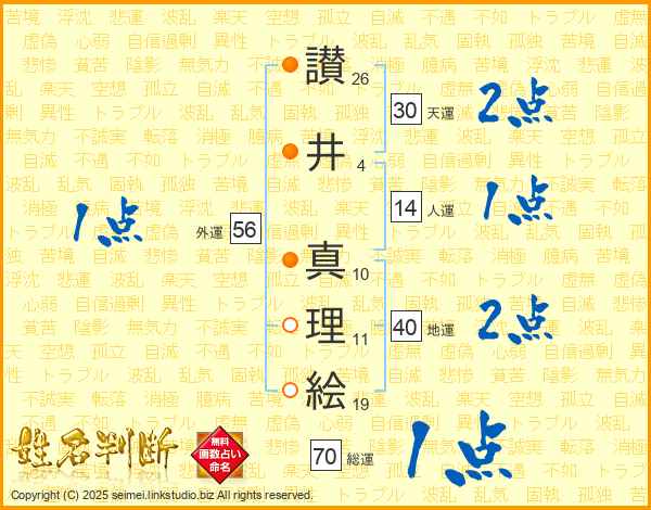 讃井真理絵さんの天運は30画の2点!