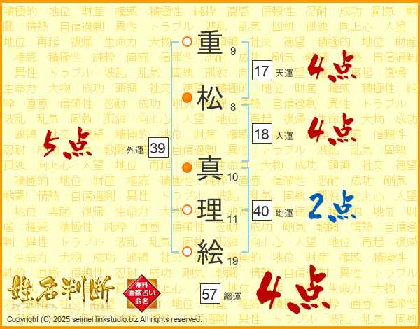重(9画)松(8画) 真(10画)理(11画)絵(19画)