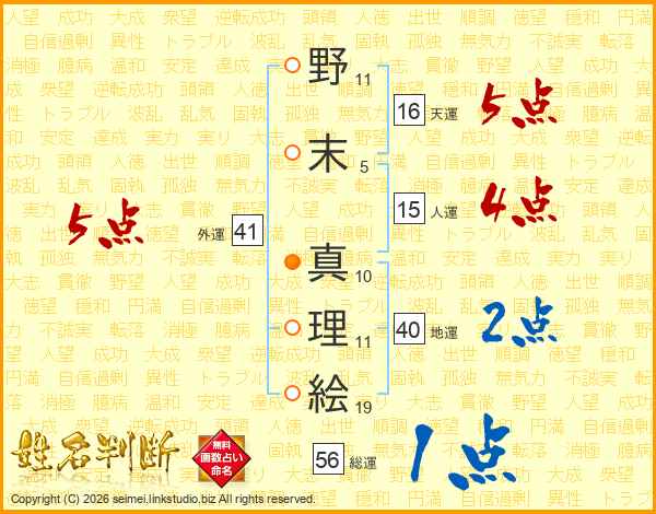 野末真理絵さんの総運は56画の1点!