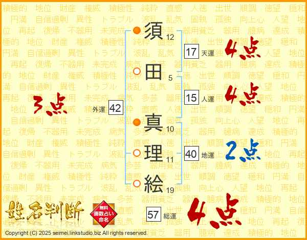 須(12画)田(5画) 真(10画)理(11画)絵(19画)