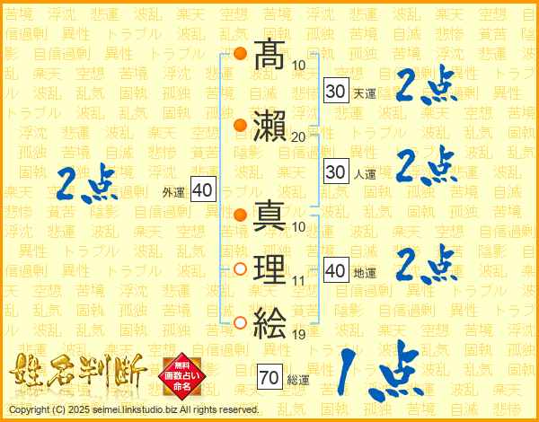 髙(10画)瀨(20画) 真(10画)理(11画)絵(19画)