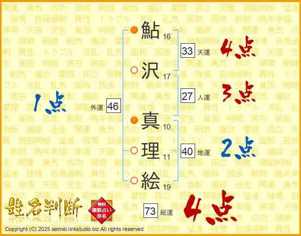 鮎沢真理絵さんの総運は73画の4点!
