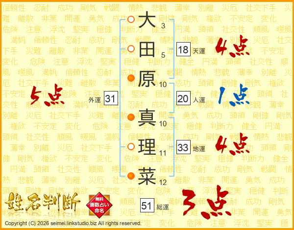 大田原真理菜さんの総運は51画の3点!