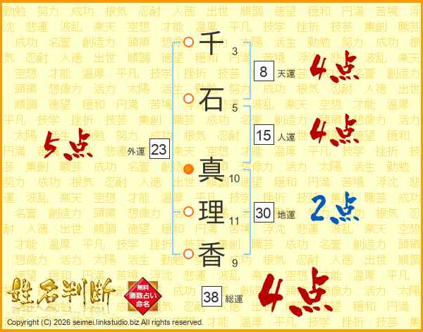 千石真理香さんの総運は38画の4点!