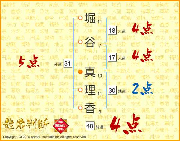 堀谷真理香さんの総運は48画の4点!