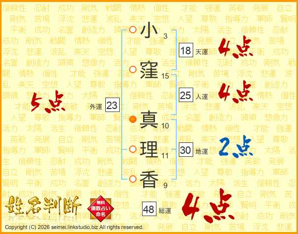 小窪真理香さんの天運は18画の4点!
