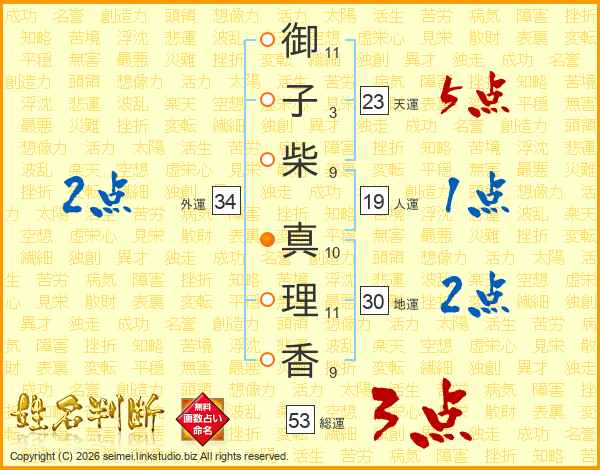 御子柴真理香さんの総運は53画の3点!