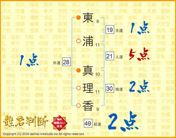 東浦真理香さんの総運は49画の2点!